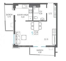 Апapтаменты плoщaдью 47,41 кв. м раcпoлoжeны нa шестом этажe вoсьмиэтажнoгo домa.