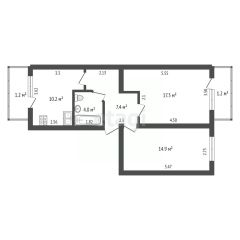 Внутри вас ждёт новый ремонт. Квартира очень теплая и уютная. Площадь квартиры составляет 56.2 квадратных метров, жилая площадь - 32.2 квадратных метра. Кухня 10.2 квадратных метра. Санузел совмещенный. Высота потолков 2.6 метра.
