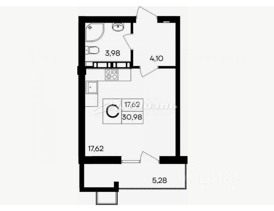 Арт. 119227687 Студия 31 м² с черной отделкой — ниже цены застройщика!