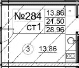 - Жилая комната с зоной кухни: 13.86 кв.м.
