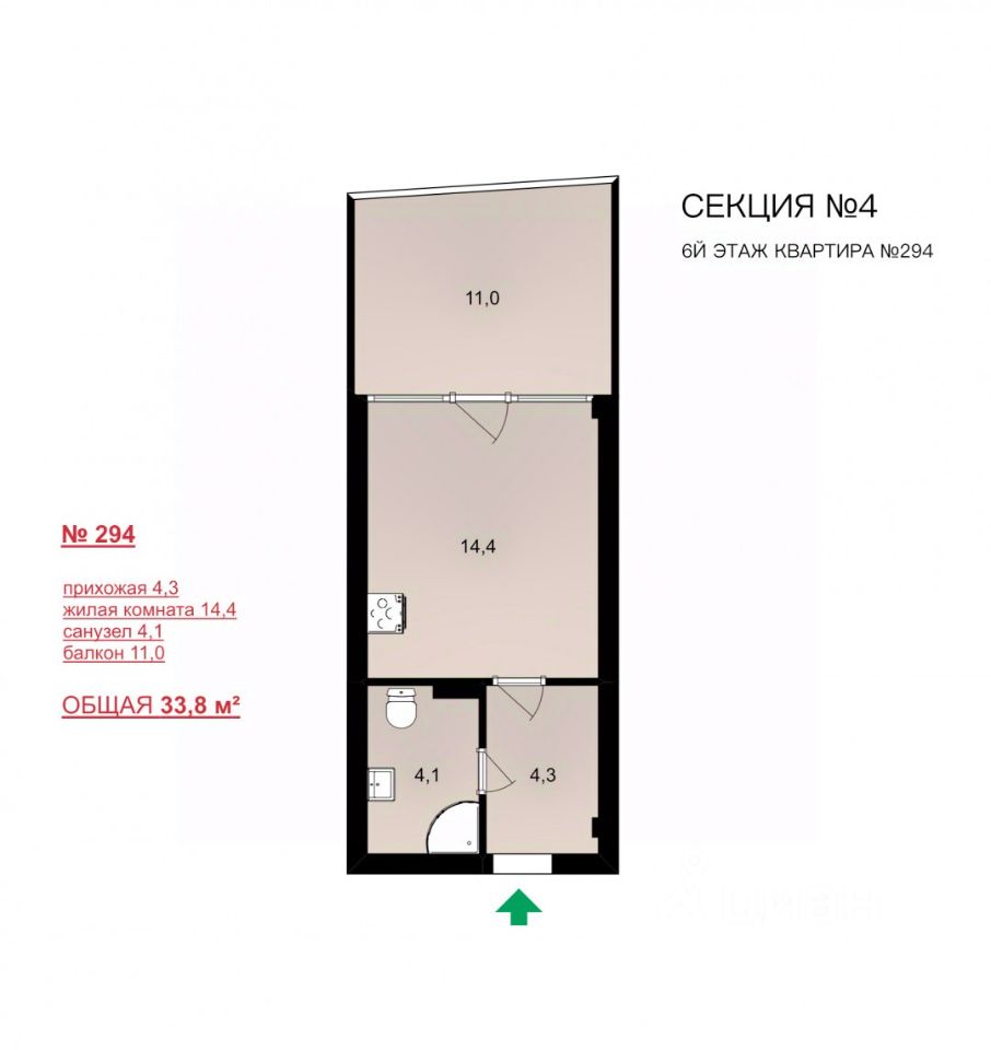 Общей площадью 33,8 кв.м. Видео вышлю по запросу.
