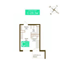 Продаётся 1-комнатная квартира в строящемся доме (Дом 7к2), срок сдачи: II-кв. 2027, общей площадью 25.3 кв.м., на 9 этаже. УМНЫЙ ЖИЛОЙ КОМПЛЕКС