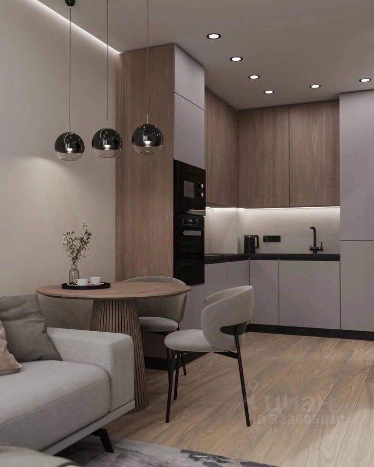 Квартира выполнена в современном стиле, с использованием качественных материалов. Евроремонт создаёт атмосферу уюта и комфорта. В комнате и на кухне расположена вся необходимая мебель и техника, что позволяет сразу заселиться и начать жить.