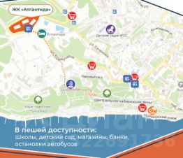 Приморский парк, море и пляжи, центральная набережная, школы, детские сады, косметологические клиники, рестораны, тренажерные залы, аквапарк, остановки общественного транспорта, магазины и банки.