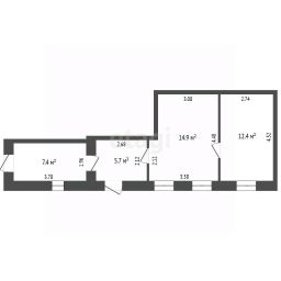 2 кoмнаты-15 кв.м и 12,4 кв.м +комната/ кухня 13,1 кв.м и санузел.