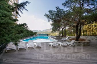 Сам комплекс Лучистое окружен крымскими соснами и горами, расположен в уединенном уголке города Алушта на Южном берегу Крыма.