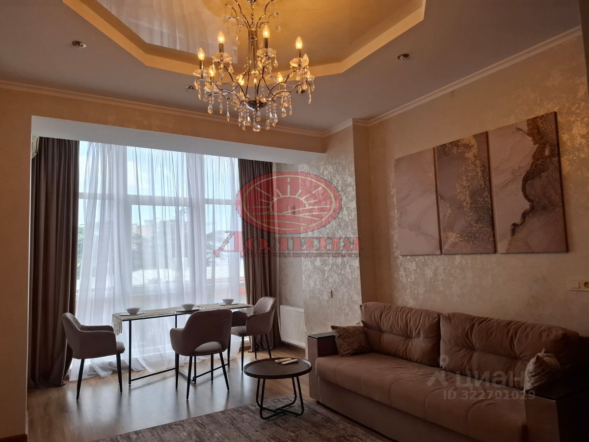 Общая площадь : 58,4 м2 , площадь кухни 10 м2 , шикарная лоджия с видом на море. Апартаменты расположены на 4 этаже 9-ти этажного дома.