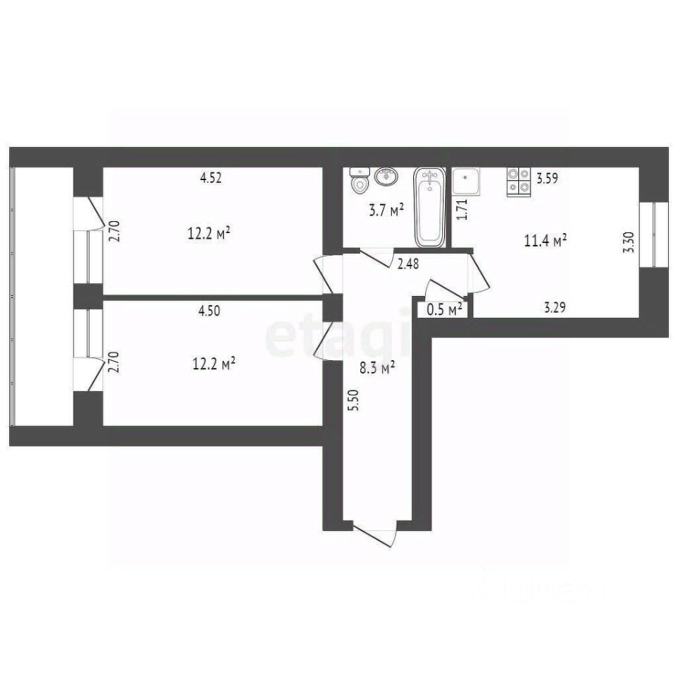 Планировка улучшенная: комнаты 12.8; 12.2 квадратных метра.