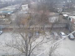 Во дворе автомобильная стоянка, магазин, освещенная улица, асфальтированная проезжая часть и тротуары. Очень чисто и уютно.