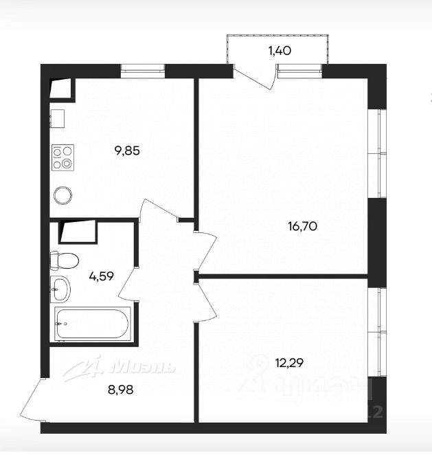 • Высота потолков 3,1 м — ощущение простора и возможность реализации сложных дизайнерских решений