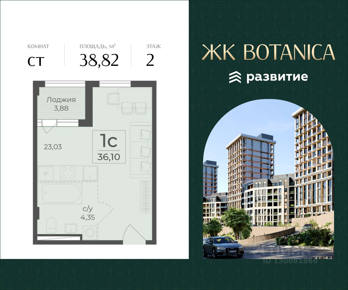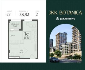 Продается квартира площадью 38.82 кв. м с отделкой white box на 2 этаже 15 этажного дома. Квартира находится в 2 секции жилого комплекса бизнес-класса Botanica.