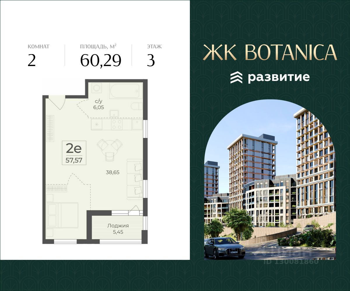 В продаже квартира площадью 60.29 кв. м с отделкой White Box, расположенная в жилом комплексе бизнес-класса Botanica. Проект от федерального застройщика ГК "Развитие" находится в живописном месте Ялты, вблизи Массандровского парка. Botanica - квартиры у моря для жизни и инвестиций.