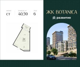 Продается квартира площадью 40.59 кв. м с отделкой white box на 6 этаже 7 этажного дома. Квартира находится в 3 секции жилого комплекса бизнес-класса Botanica.