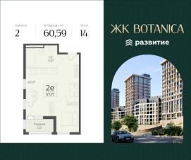 Продается квартира площадью 60.59 кв. м с отделкой white box на 14 этаже 15 этажного дома. Квартира находится в 6 секции жилого комплекса бизнес-класса Botanica.