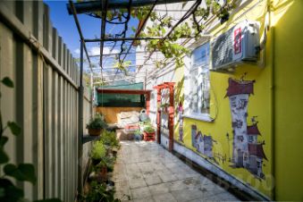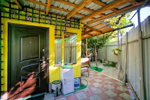 Собственный дворик с растениями, виноградом, мангальной зоной, диван и стол под навесом, красивое лавровое дерево создаёт уютную тень летом. Есть кран с водой во дворе, шланг, можно поливать свои огурцы.