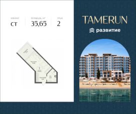 В продаже s комнатный апартамент площадью 35.65 кв. м, без отделки. Апартамент расположен в апарт-комплексе Tamerun от ГК "Развитие".