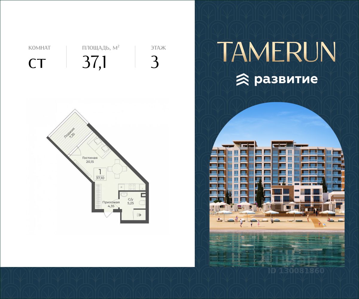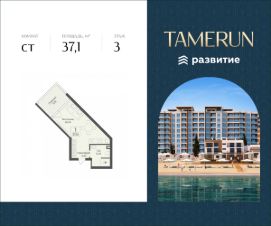 В продаже s комнатный апартамент площадью 37.10 кв. м, без отделки. Апартамент расположен в апарт-комплексе Tamerun от ГК "Развитие".
