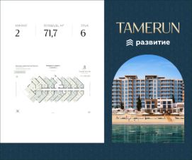 В продаже 2 комнатный апартамент площадью 71.70 кв. м, без отделки. Апартамент расположен в апарт-комплексе Tamerun от ГК "Развитие".