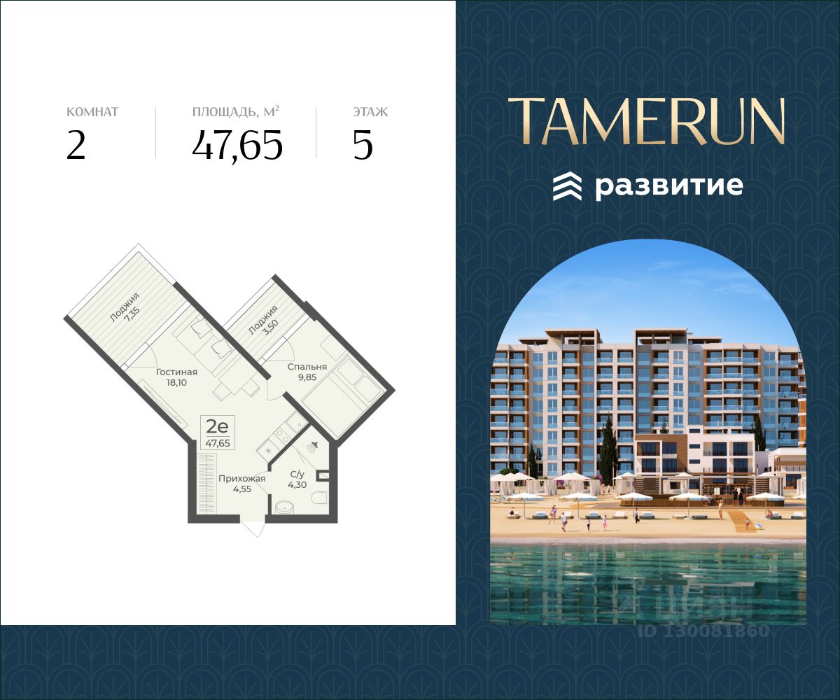 Tamerun - морская резиденция на Западном берегу Крыма, между городами Евпатория и Саки. Апарт-комплекс расположен на первой береговой линии в живописной бухте Каламийского залива, между Черным морем и розовым озером Сасык. В рамках реализации проекта предусмотрено 1213 доходных апартаментов с первоклассным отельным и санаторно-курортным сервисом. Клубная инфраструктура, историческая локация, интерьеры от ведущих дизайнеров - все это и многое другое ждет вас в солнечной резиденции Tamerun.