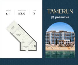 В продаже s комнатный апартамент площадью 35.80 кв. м, без отделки. Апартамент расположен в апарт-комплексе Tamerun от ГК "Развитие".