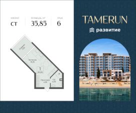 В продаже s комнатный апартамент площадью 35.85 кв. м, без отделки. Апартамент расположен в апарт-комплексе Tamerun от ГК "Развитие". Tamerun - морская резиденция на Западном берегу Крыма, между городами Евпатория и Саки. Апарт-комплекс расположен на первой береговой линии в живописной бухте Каламийского залива, между Черным морем и розовым озером Сасык. В рамках реализации проекта предусмотрено 1213 доходных апартаментов с первоклассным отельным и санаторно-курортным сервисом. Клубная инфраструктура, историческая локация, интерьеры от ведущих дизайнеров - все это и многое другое ждет вас в солнечной резиденции Tamerun. Расположение Пешком: - 15 мин. до Ж/Д станции "Техникум"; - 20 мин. до Ж/Д станции "Прибрежная"; - 25 мин. до Пирса у озера Сасык-Сиваш. На автомобиле: - 5 мин. до Симферопольского шоссе; - 10 мин. до города Саки; - 20 мин. до Евпатории; - 45 мин. до аэропорта имени И. К. Айвазовского. Благоустройство - собственный клубный пляж; - развлекательный центр; - 2 открытых и 1 закрытый бассейн; - медицинский SPA-комплекс; - фитнес-центр с залами для йоги и гимнастики; - площадки для тенниса, футбола и волейбола; - амфитеатр на свежем морском воздухе; - лаунж-зона и прогулочные дорожки; - детский клуб с кинотеатром; - батуты, лабиринты и скалодромы для подростков; - конференц-зал на 50 человек и переговорные кабинеты; - более 100 растений в приватном дворе; - круглосуточный консьерж-сервис; - подземный паркинг на 188 машино-мест с автомойкой; - наземная гостевая парковка на 259 машино-мест; - летнее кафе, 3 ресторана и супермаркет прямо в доме. Окружение - Сасыкский заказник, крупнейшее в Крыму соленое розовое озеро Сасык-Сиваш, песчаные пляжи протяженностью в 150 метров; - главная мечеть Евпатории Джума-Джами, Собор Николая Чудотворца, Комплекс Караимских кенас; - множество другой повседневной инфраструктуры в ближайшем городе Саки.