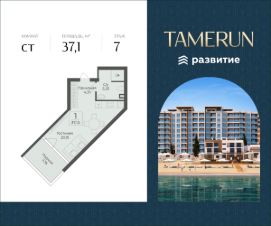 В продаже s комнатный апартамент площадью 37.10 кв. м, без отделки. Апартамент расположен в апарт-комплексе Tamerun от ГК "Развитие".