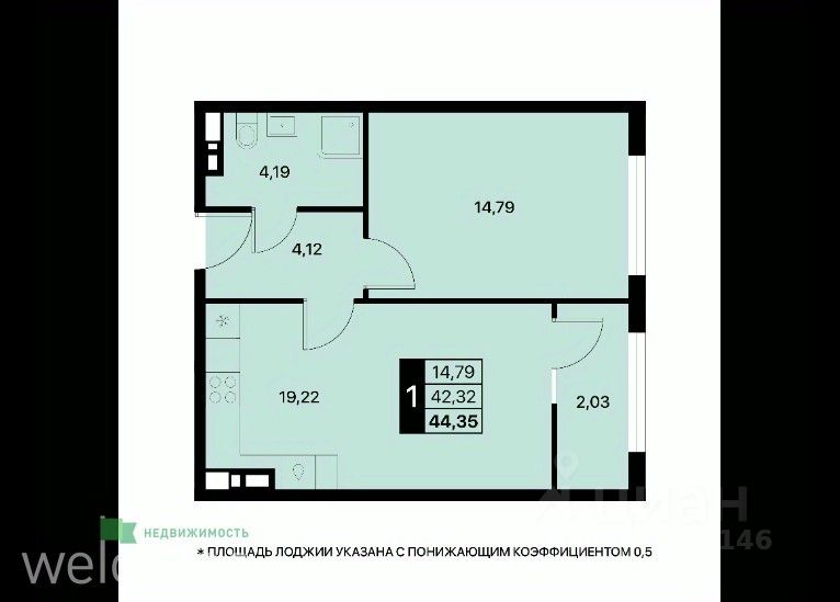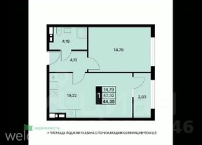 Общая площадь44,35 м²