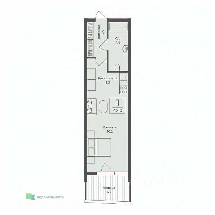 Общая площадь42 м²