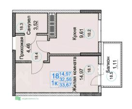 Продается 1-комн. квартира, 33,67 м²