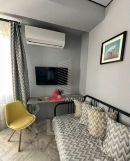 В квартире сделан дизайнерский ремонт, Квартира представляет собой гостинную с зоной кухни и отдельную спальню.