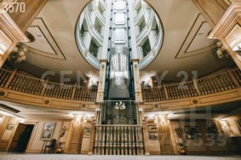панорамный лифт возносит вдоль ажурных решеток и зеркальных стекол атриума вверх,