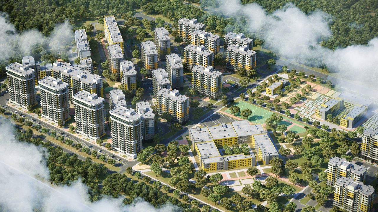 На территории района расположится всё необходимое для комфортной жизни магазины, кафе, школа и детские сады, спортивные площадки и многое другое.