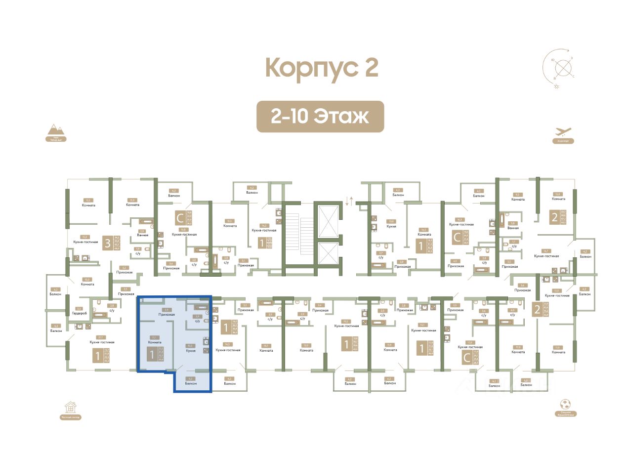 Оригинальная компоновка различных игровых площадок и зон отдыха все объекты инфраструктуры расположены на расстоянии вытянутой руки - чтобы дойти до прогулочной зоны или детской площадки, вам не придется тратить много времени. Все находится в безопасном дворе.