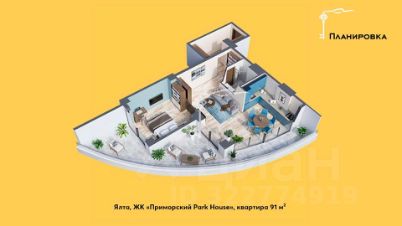 Cветлая и просторная квартира под отделку площадью 91 м² находится на 16-м этаже 20-этажного дома в престижном районе ялтинского Приморского парка им. Гагарина.