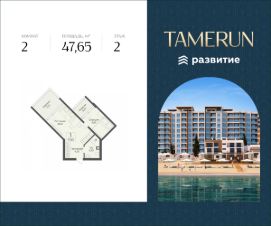 В продаже 2 комнатный апартамент площадью 47.65 кв. м, без отделки. Апартамент расположен в апарт-комплексе Tamerun от ГК "Развитие".