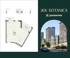 Продается квартира площадью 57.31 кв. м с отделкой white box на 2 этаже 15 этажного дома. Квартира находится в 2 секции жилого комплекса бизнес-класса Botanica.