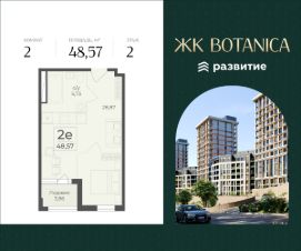 Продается квартира площадью 48.57 кв. м с отделкой white box на 2 этаже 15 этажного дома. Квартира находится в 2 секции жилого комплекса бизнес-класса Botanica.