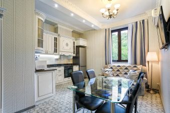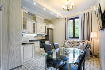 Продаётся стильная квартира площадью 47,8 м² с современным дизайнерским ремонтом, расположенная на 3 этаже элитного жилого комплекса Император — жемчужины Ливадии, построенной в изысканном дворцовом стиле XIX века.