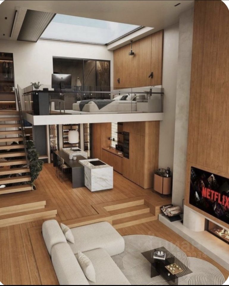2 санузла, 2 гардеробные, 2 спальни , кухня -гостиная 30 м2 с потолком 3,9м