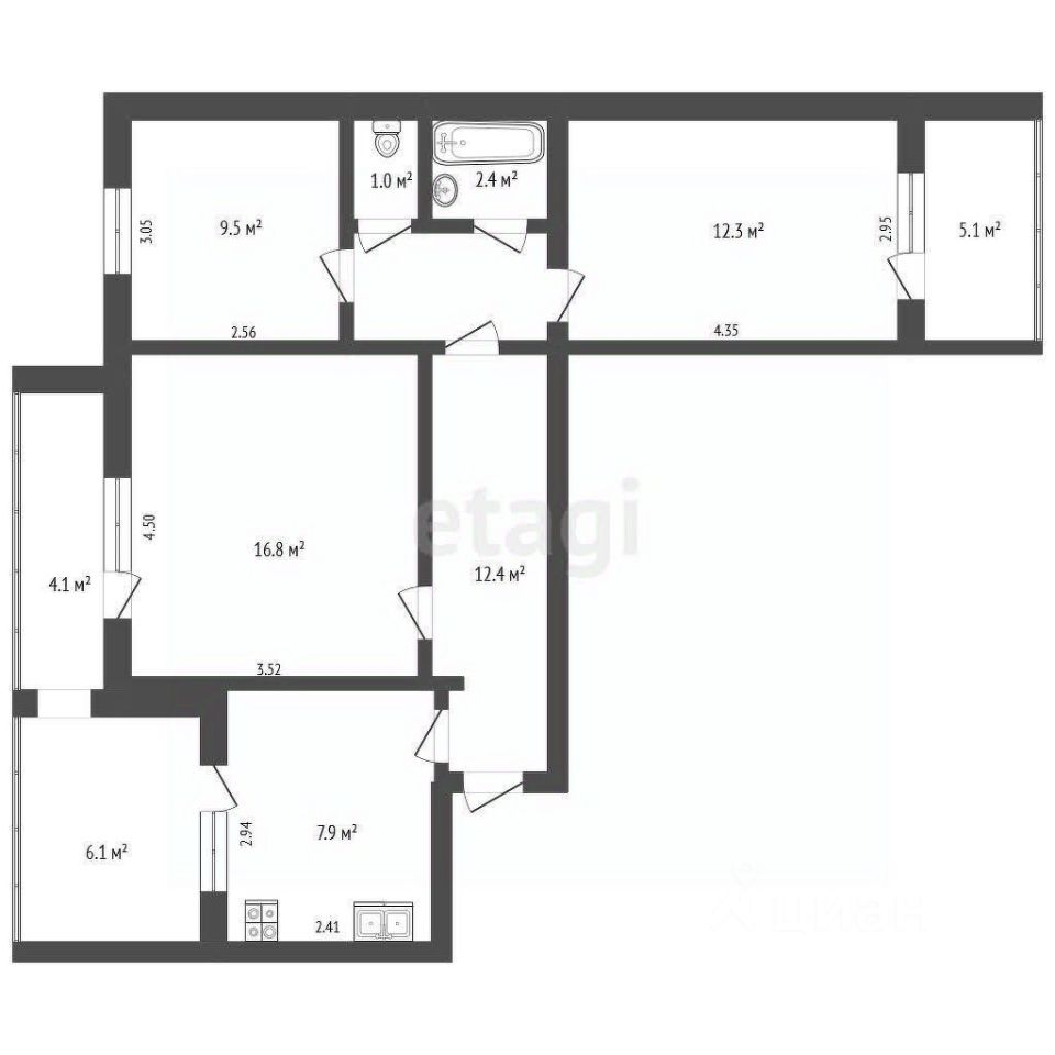 Светлая уютная квартира включает три просторные изолированные комнаты, комфортную кухню площадью 8,0 м2, раздельный санузел, прихожую и две большие застекленные лоджии.
