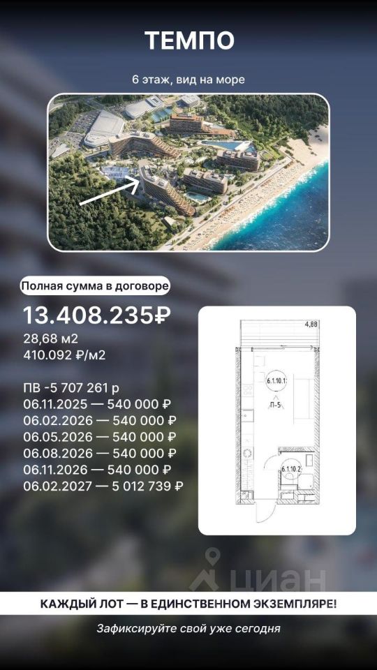 Ищете актив, который будет приносить доход в ускоренном темпе? Апартаменты в комплексе Темпо на первой береговой линии Крыма — ваш стратегический выбор.