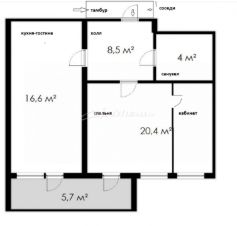 Общая площадь: 49,5 кв.м. + балкон 5,7 кв.м. = 55,2 кв.м.