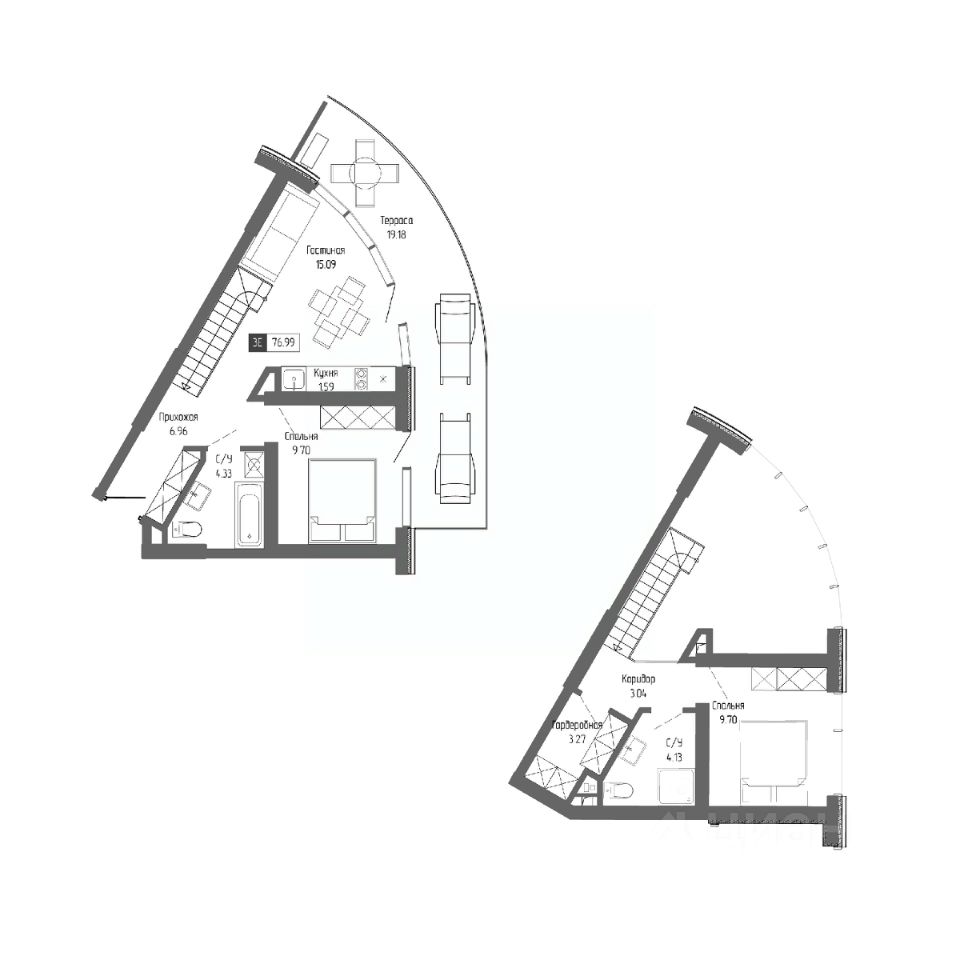 Здания оригинальной треугольной формы обеспечивают равномерное наполнение каждых апартаментов солнечным светом. Точно выверенный угол поворота корпусов позволяет любоваться завораживающими панорамами Крыма.