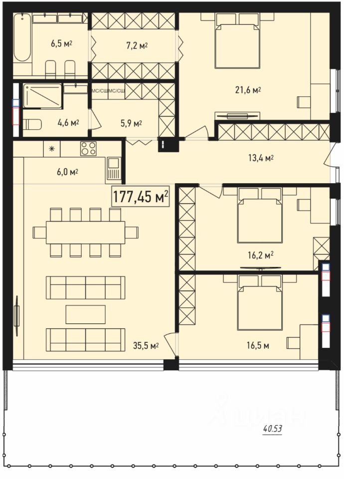 Продаются 4-комнатные апартаменты в сданном доме (Корпус "Чехов" (3 этап)), срок сдачи: IV-кв. 2022, общей площадью 177.45 кв.м., на 3 этаже. Корпус сдан.