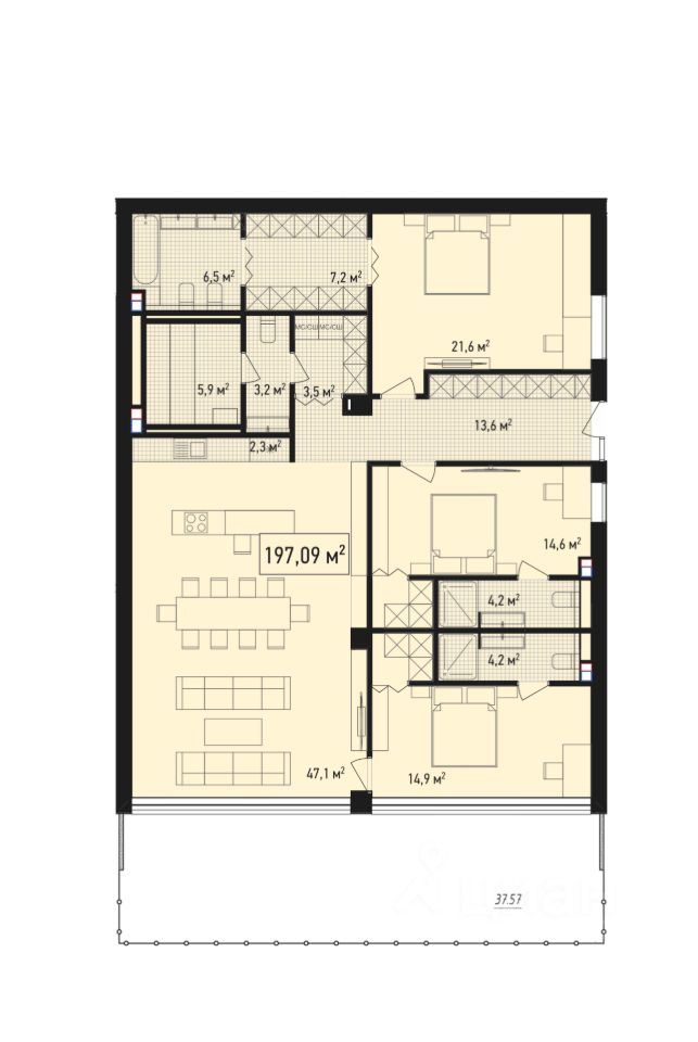 Продаются 4-комнатные апартаменты в сданном доме (Корпус "Чехов" (3 этап)), срок сдачи: IV-кв. 2022, общей площадью 197.09 кв.м., на 2 этаже. Корпус сдан.