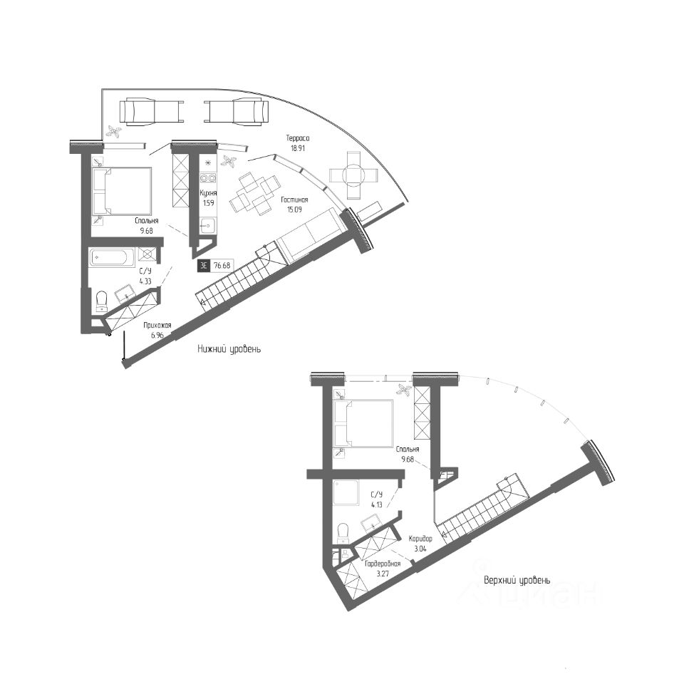 Здания оригинальной треугольной формы обеспечивают равномерное наполнение каждых апартаментов солнечным светом. Точно выверенный угол поворота корпусов позволяет любоваться завораживающими панорамами Крыма.