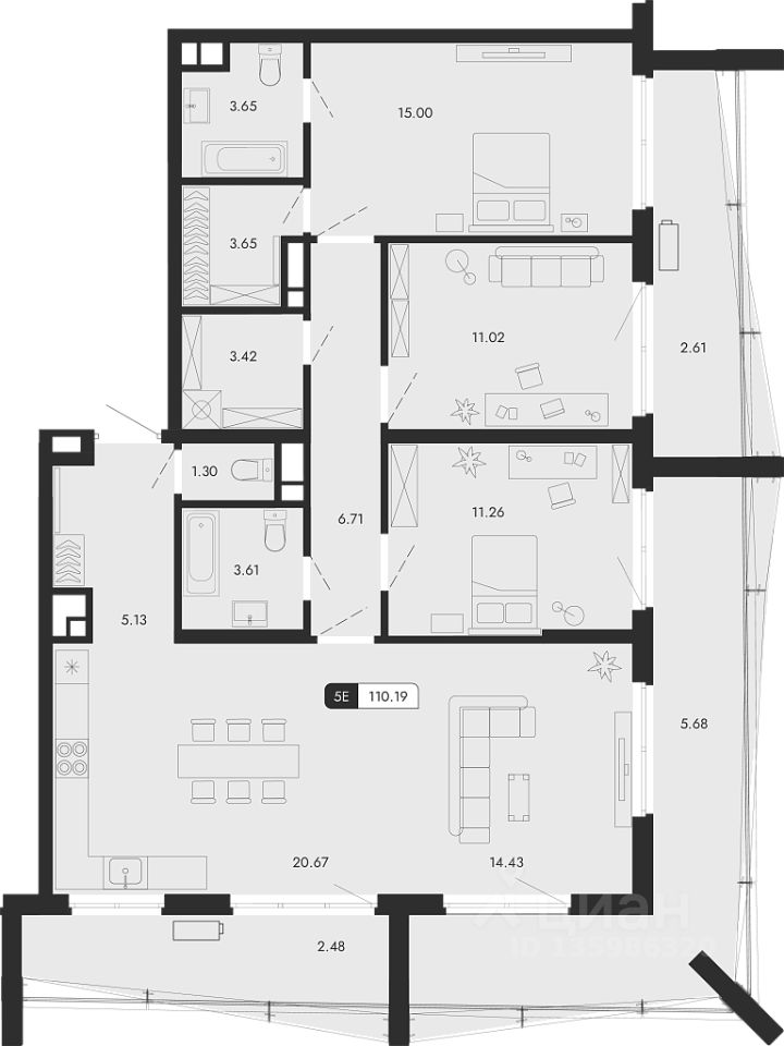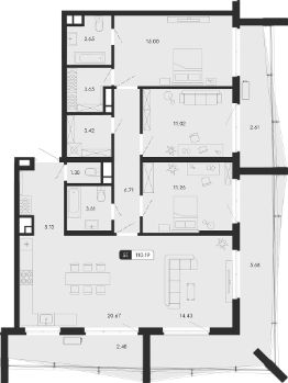 Продаётся 5-комнатная квартира в строящемся доме (дом 2), срок сдачи: III-кв. 2027, общей площадью 110.19 кв.м., на 6 этаже.
