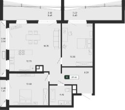 Продаётся 3-комнатная квартира в строящемся доме (дом 2), срок сдачи: III-кв. 2027, общей площадью 69.44 кв.м., на 5 этаже.