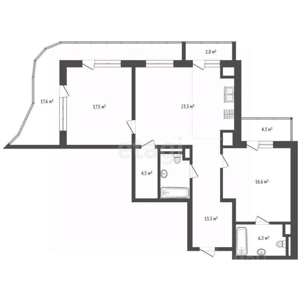 — Высота потолков 3 метра — Кухня-гостиная — светлая, вместительная, идеальна для уютных вечеров и встреч с друзьями.