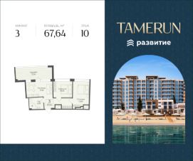На первой береговой линии Черного моря продается апартамент площадью 67.64 кв. м без отделки. Апартамент находится в апарт-комплексе премиум-класса Tamerun Grand Mirmax 5*, между городами Евпатория и Саки от федерального застройщика ГК "Развитие".